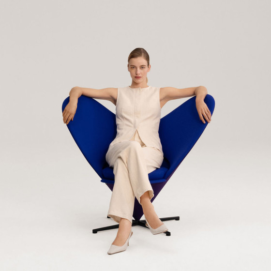 隨後,Panton 進一步推出 Heart Cone Chair,在原有錐形輪廓上,加入寬闊心形椅背,強化乘坐時的包覆感,大幅提升舒適體驗,於鮮明造型與實用機能間取得平衡,它不僅是一張椅子,而是一件能激發想像、令人心動不已的經典之作。