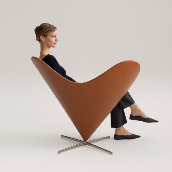 隨後,Panton 進一步推出 Heart Cone Chair,在原有錐形輪廓上,加入寬闊心形椅背,強化乘坐時的包覆感,大幅提升舒適體驗,於鮮明造型與實用機能間取得平衡,它不僅是一張椅子,而是一件能激發想像、令人心動不已的經典之作。