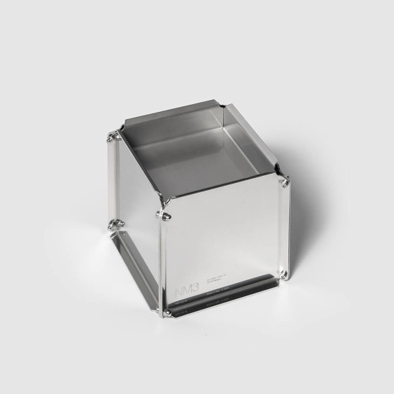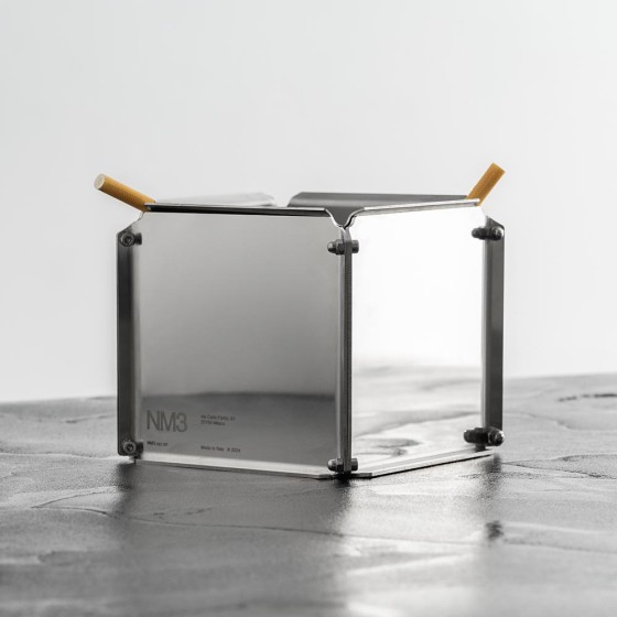 NM31 是由四片鏡面不鏽鋼板所構成的煙灰缸,透過外露螺絲進行組裝,金屬結構清晰可見,展現出精準純粹的工業語彙。