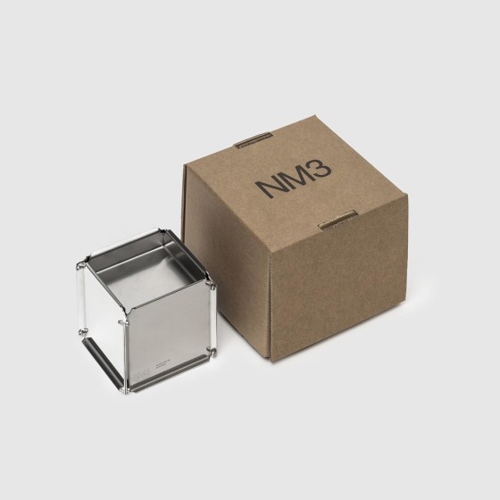 NM3 尤擅於金屬工藝技術,多數產品為雷射切割後組裝製成,冷冽的鋼或鋁材以各式幾何輪廓呈現,使其散發時髦的現代氣息,部份甚至刻意保留了組合時所用的螺絲帽,突顯出標誌性特色。極簡造型能輕易融入各式居家空間,經鏡面處理的產品,更可通過倒影拓寬視野感受,反射光源增加房間內明亮度;而得益於材質本身特性,使得清潔與保養亦簡單便利。