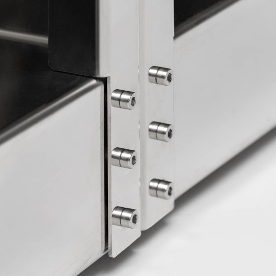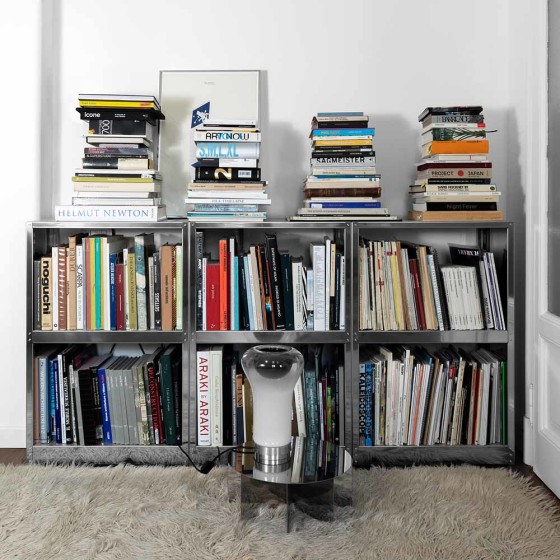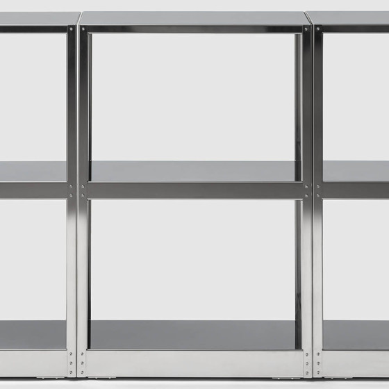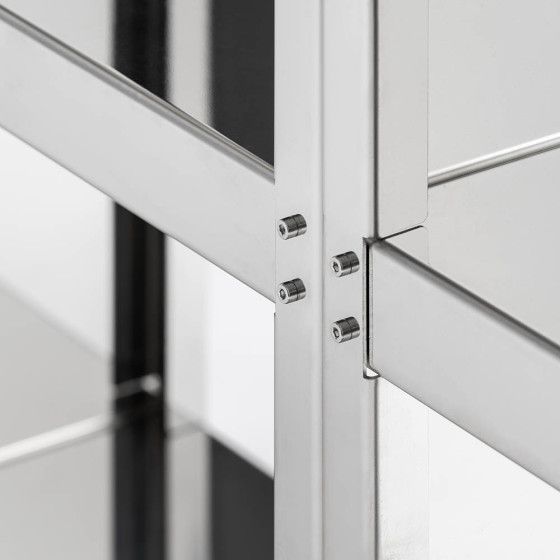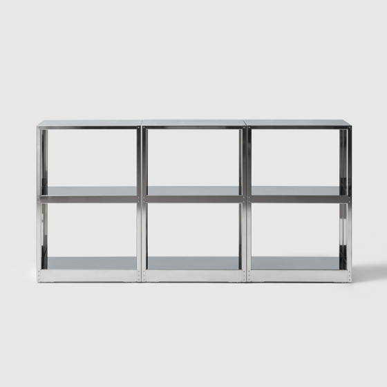 NM25 開放式金屬層架是由多個矩形金屬模組連接而成,可靈活收納黑膠唱片、書籍與雜誌,亦可作為儲物櫃或展示架,滿足多元使用需求。整體採可拆卸模組化設計,不僅有效降低運輸成本、提升收納效率,為空間配置帶來更多可能性。