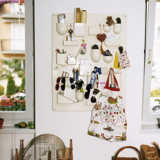 設計師 Dorothee Becker 應該鮮少有人聽過她的名號,事實上她可是大師 Ingo Maurer 的賢內助,從這個西元 1969 年的老設計來看,我們大膽推測她本身就是個聰明的亂堆高手,才能看破人性的弱點並善加利用。這個簡單卻驚人的好物,或許更該稱之為發明?除了拯救當時無數絕望的家庭主婦,至今看過「Uten. Silo 雜物牆上收」的人,無不嘖嘖稱奇。