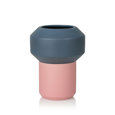 Fumario 陶瓷拼色花瓶(藍灰/桃粉、H 20.5cm) -