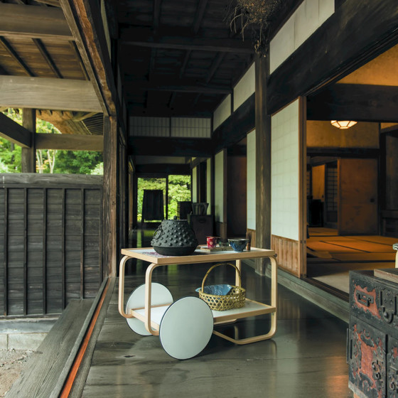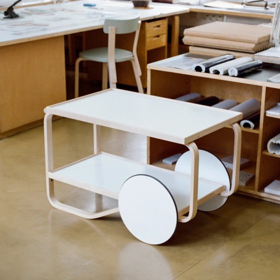 Tea Trolley 白輪茶几的創作靈感,是來自 Aalto 夫婦新婚旅行時在義大利所見到的傳統家具,那是一張帶有把手和單邊金屬輪的小桌子。夫婦倆愛不釋手,於是就將之帶回芬蘭,並改良成北歐風格的設計。