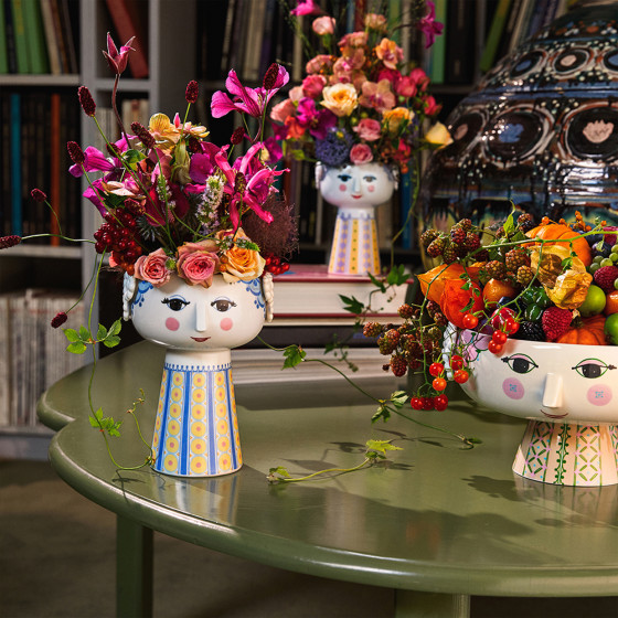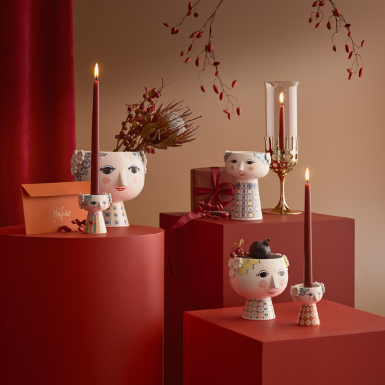丹麥設計大師 Bjørn Wiinblad(1918 – 2006)被譽為是「近代最富想像力的全方位藝術家」。其作品風格極具辨識度,線條豐富色彩斑斕,是北歐極「繁」主義的代表。Wiinblad 喜愛運用自然元素如纏繞的藤蔓、花環、樹枝,呈現濃濃的森林氣息;筆下人物則常是詼諧的幸福圓臉與俏尖鼻子,趣味盎然。
