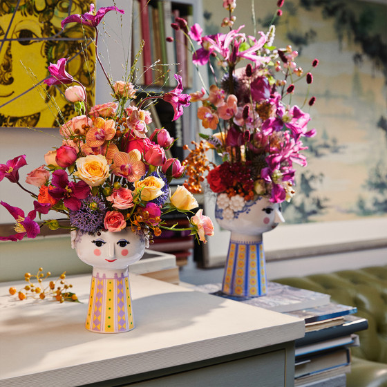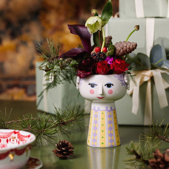 丹麥設計大師 Bjørn Wiinblad(1918 – 2006)被譽為是「近代最富想像力的全方位藝術家」。其作品風格極具辨識度,線條豐富色彩斑斕,是北歐極「繁」主義的代表。Wiinblad 喜愛運用自然元素如纏繞的藤蔓、花環、樹枝,呈現濃濃的森林氣息;筆下人物則常是詼諧的幸福圓臉與俏尖鼻子,趣味盎然。