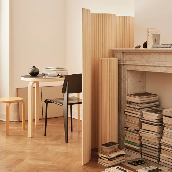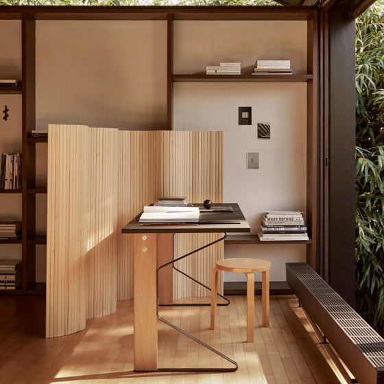 為歡慶 Artek 90 週年,品牌特別於 2025 年將檔案中的經典作品以嶄新面貌重現,在保留原始設計靈魂的同時,更採用可持續發展木材與革新工藝,延續其永恆魅力。將深受喜愛且歷久不衰的 Screen 100 屏風系列,推出三種新高度選擇,除了原有的 150 公分(100B)外,分別為 100 公分(100D)、130 公分(100C)與 180 公分(100A), 以滿足當代室內空間的多樣需求。