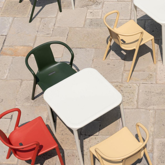 圓角平滑,面積小巧的四方桌由施加防曬處理的 PP 塑料製作,不僅陽台庭院好用,室內的讀書角落,或是廚房的兩人餐桌也很適合,通用的尺寸和外型更是百搭你所有原本的家具。