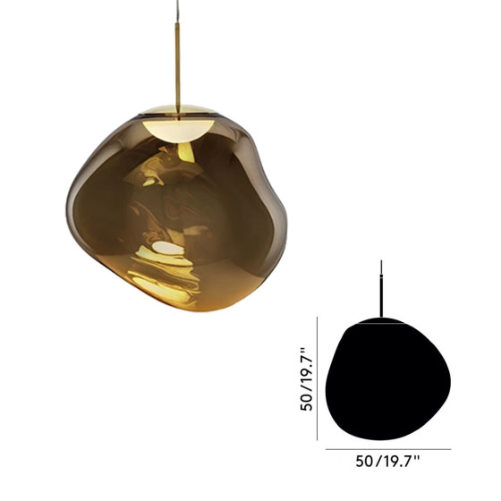 Melt Light 小宇宙吊燈採用了 Polycarbonate 聚碳酸酯來做為燈具本體,這是一種看起來尋常,卻高度耐熱耐衝擊、高透光(比玻璃更透)且不易變質的環保無毒塑料。而形塑了各種奇異的球狀燈罩之後,再將紅銅、鉻或黃金溶液(沒錯不是黃銅是黃金),以類似真空電鍍的方式融合在整顆球體之上。