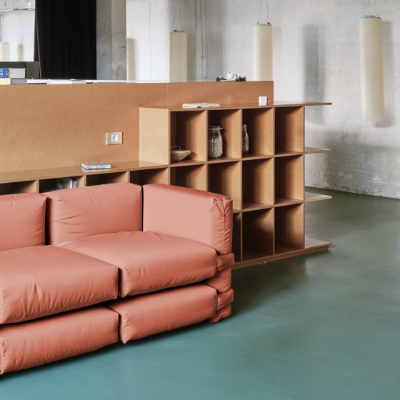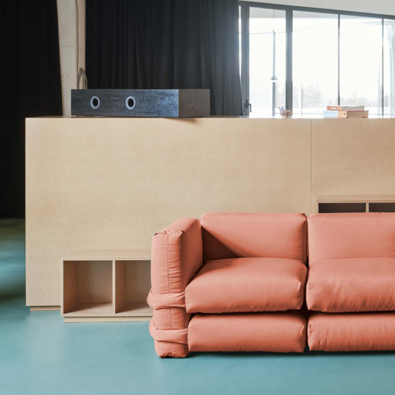 由比利時藝術家雙人組 Muller Van Severen 設計了《Pillow Sofa》沙發系列,最初於 2021 年構想,受到設計服飾品牌 KASSL Edition 經典《Pillow Bag》啟發的延伸作品。Muller Van Severen 一向以雕塑的造型語言與對材質的細膩探索聞名,他們擅於跨越藝術、建築與日常文化間的界線,將直覺與趣味性注入作品,使設計自然遊走於跨界之間。 這款沙發延續了他們獨特的創作視角,將品牌自由靈活的精神帶入家具領域。
