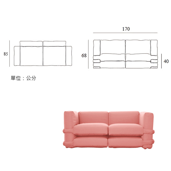 Pillow 蓬軟雙人座扶手沙發(暈染粉)