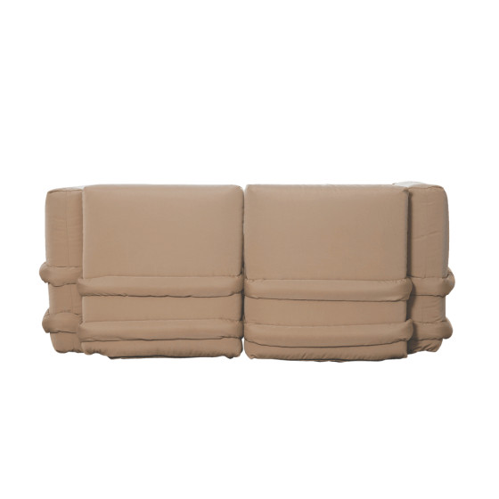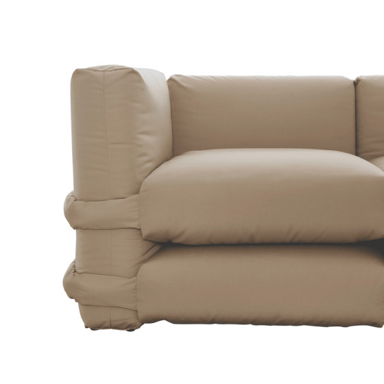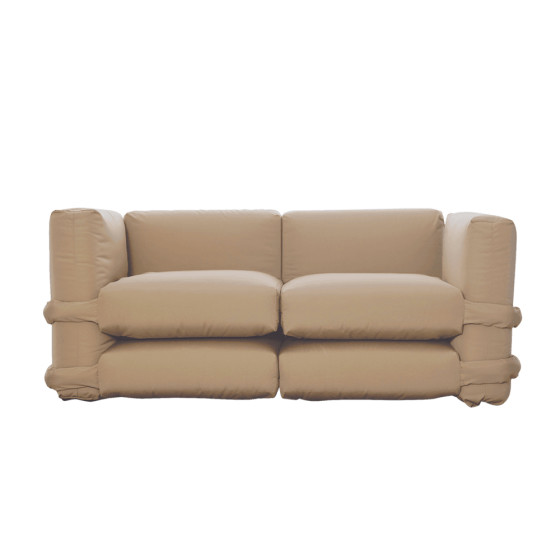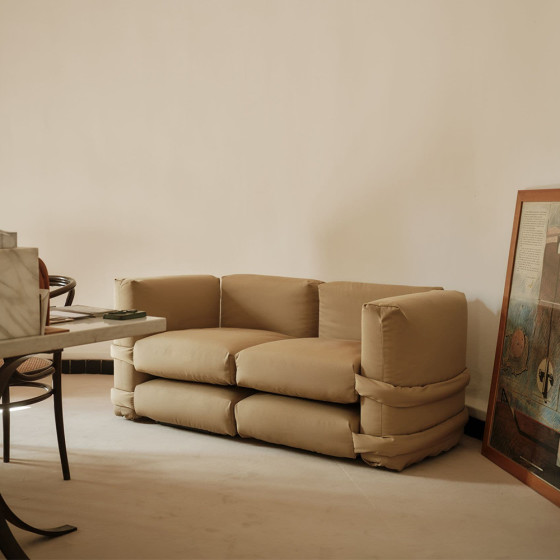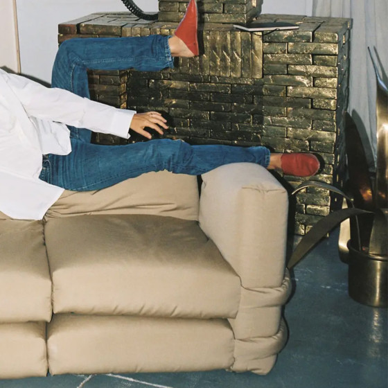 由比利時藝術家雙人組 Muller Van Severen 設計了《Pillow Sofa》沙發系列,最初於 2021 年構想,受到設計服飾品牌 KASSL Edition 經典《Pillow Bag》啟發的延伸作品。Muller Van Severen 一向以雕塑的造型語言與對材質的細膩探索聞名,他們擅於跨越藝術、建築與日常文化間的界線,將直覺與趣味性注入作品,使設計自然遊走於跨界之間。 這款沙發延續了他們獨特的創作視角,將品牌自由靈活的精神帶入家具領域。