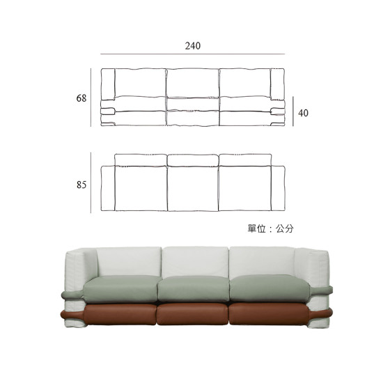 尺寸:長 240 x 寬 85 x 高 68 x 座高 40(公分)