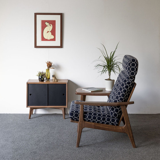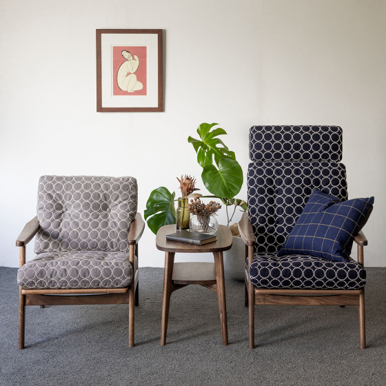 Frame Chair 高背框架扶手椅(胡桃木、靛藍鈴鼓布料)