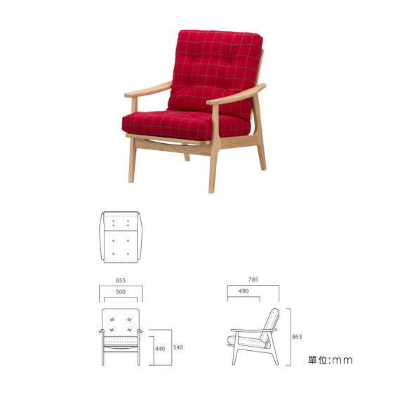 坐面:布料 Ribbon Red #3127(3% 棉、12% 腈綸、83% 聚酯纖維、2% 羊毛)