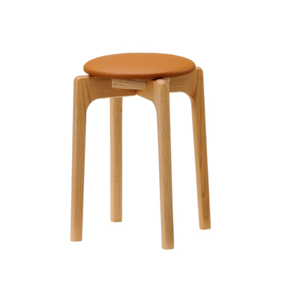 Stacking Stool 堆疊圓凳(橡木、棕色皮革)