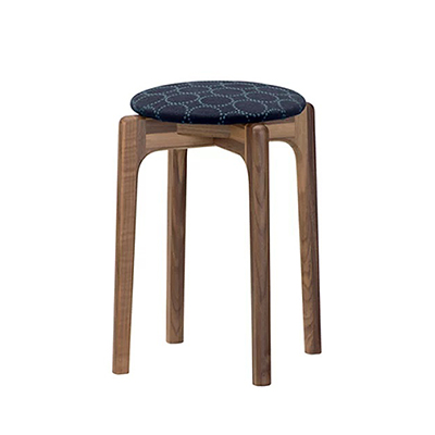 Stacking Stool 堆疊圓凳(胡桃木、靛藍鈴鼓布料)NT $14,100- 1