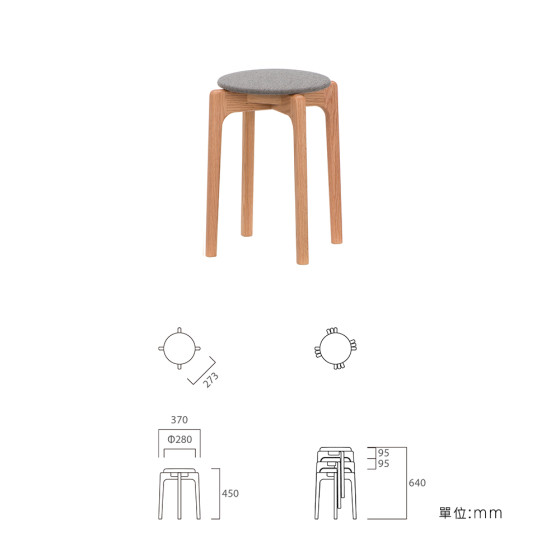 Stacking Stool 堆疊圓凳(橡木、灰布料)