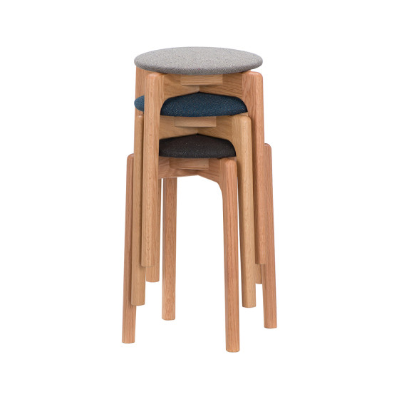 Stacking Stool 堆疊圓凳(橡木、藍鈴鼓布料) -