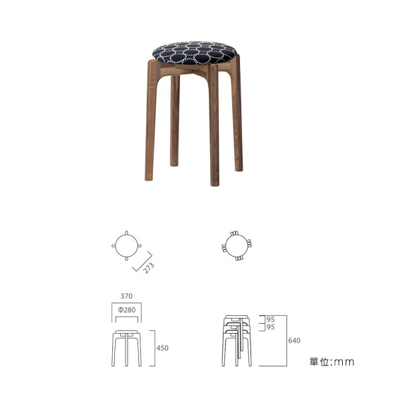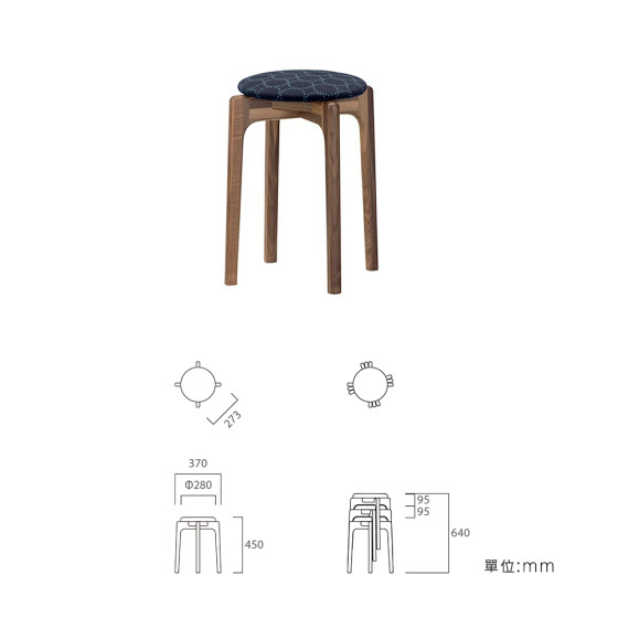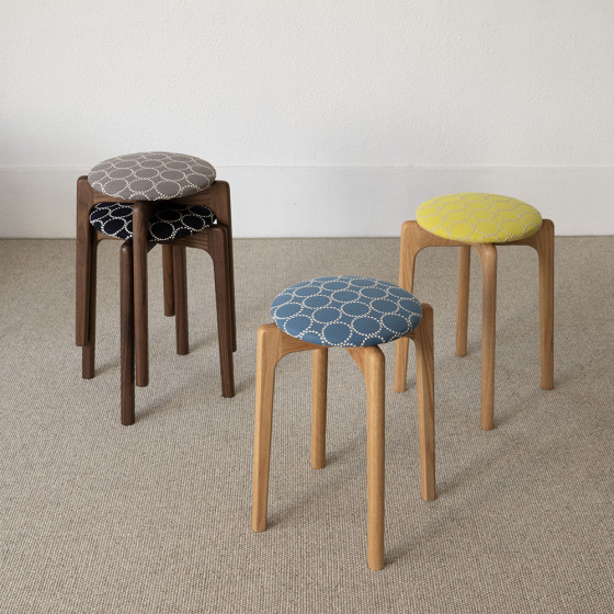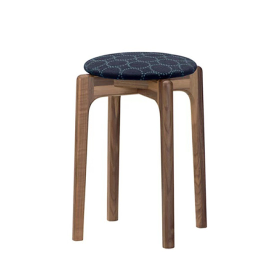 Stacking Stool 堆疊圓凳(胡桃木、靛藍鈴鼓布料)
