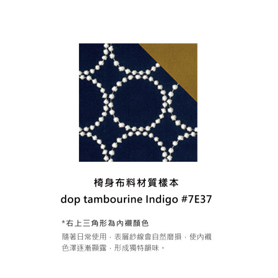 坐面:布料 dop tambourine Indigo #7E37(65% 聚酯纖維,35% 棉)