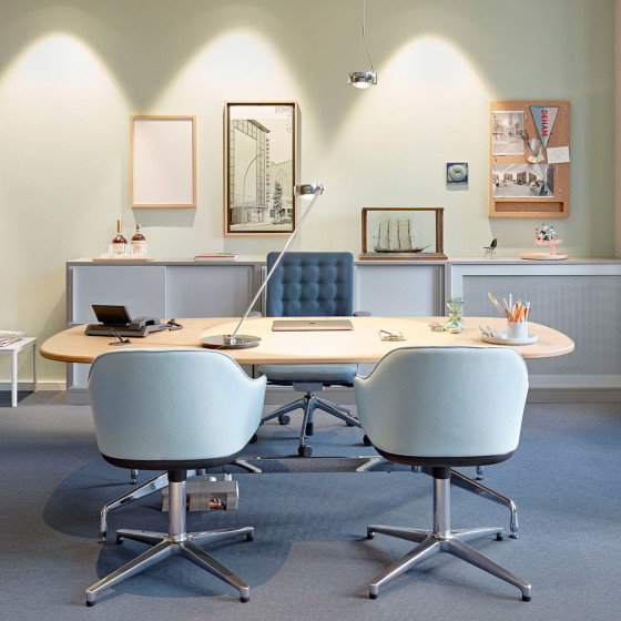 Fauteuil Direction Pivotant 工作椅(淺灰座面、鈷藍椅腳) -
