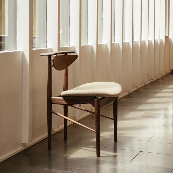 相比其他三位丹麥巨匠的作品都有「好家具除了擁有實用功能,更要能被大量製造」的設計前提,Finn Juhl 極具藝術性的家具,卻直到這張為 Bovirke 公司所創作的閱讀椅,才在經過精簡許多線條、便於量產化的考量下,真正出現為大眾而生的設計。