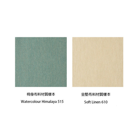 坐墊材質:泡綿軟墊、Watercolour Soft Linen 610 亞麻米面料(75% 羊毛、 25% 棉)