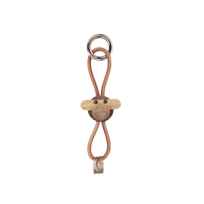 Monkey 木頭小猴 鑰匙圈(金扣棕繩) -