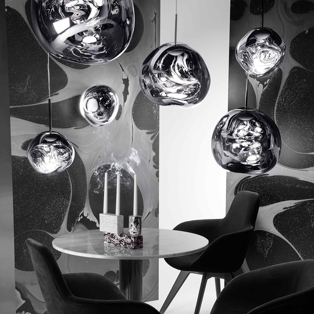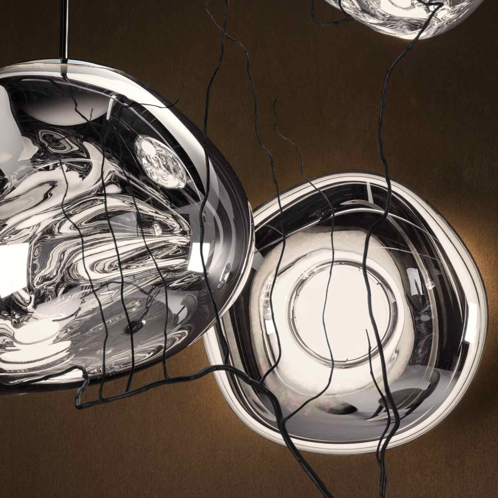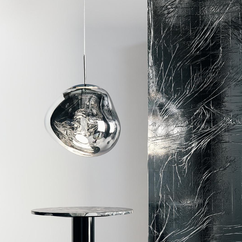 當代英國工業設計師代表 Tom Dixon 擅長將金屬工藝結合燈光藝術,其最著名的作品之一「Melt」,看似於高溫熱熔中緩緩融化的物景,卻散發著超現實的魔幻光芒,在空間中任何一隅懸掛起它,都能瞬間吸引眾人目光。