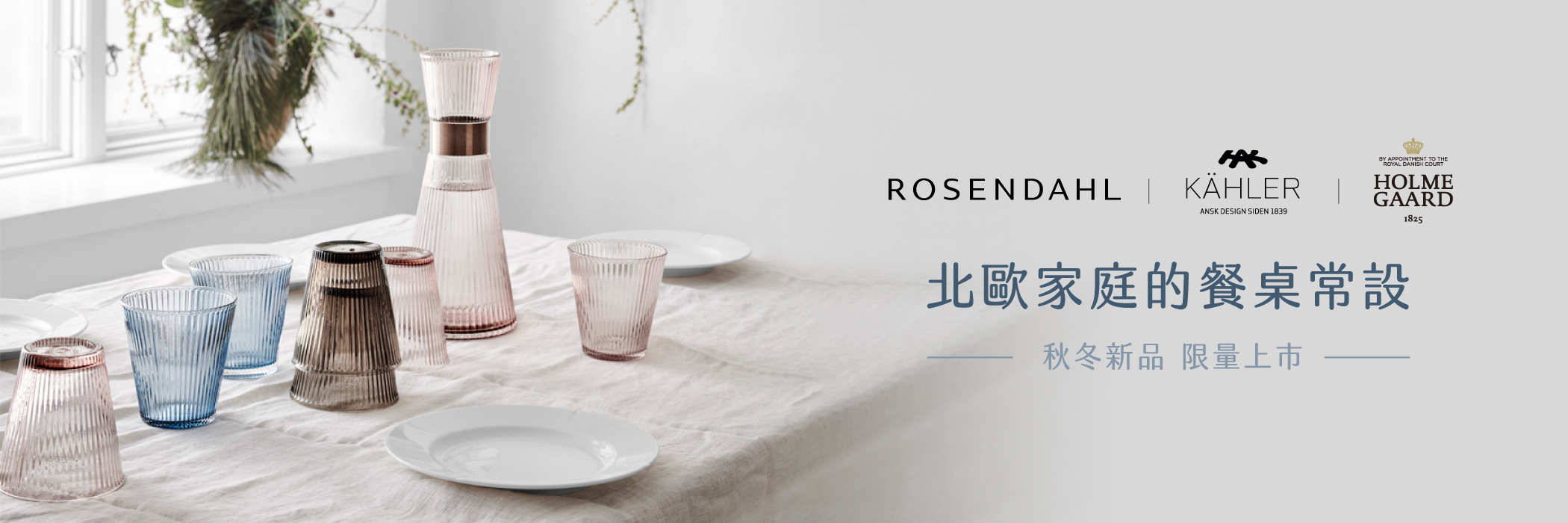 來自丹麥的家居設計 Rosendahl 與旗下品牌 Holmegaard、Kähler,是北歐家庭裡最常見的餐廚品牌,他們將玻璃、塑料、陶瓷等豐沛材質靈活運用,簡約、純淨的外觀下,藏著為使用者著想的貼心細節,並把北歐民族對大自然的熱愛精神,融入生活中,展現對美學品味的堅持,勾勒出日常家居美景。