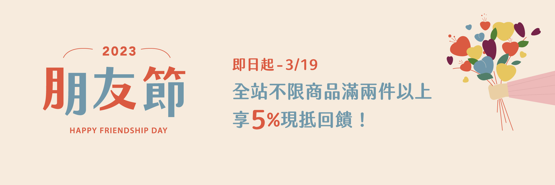 2023 朋友節 | 全站消費滿兩件,現抵 5% 回饋! (已結束)
