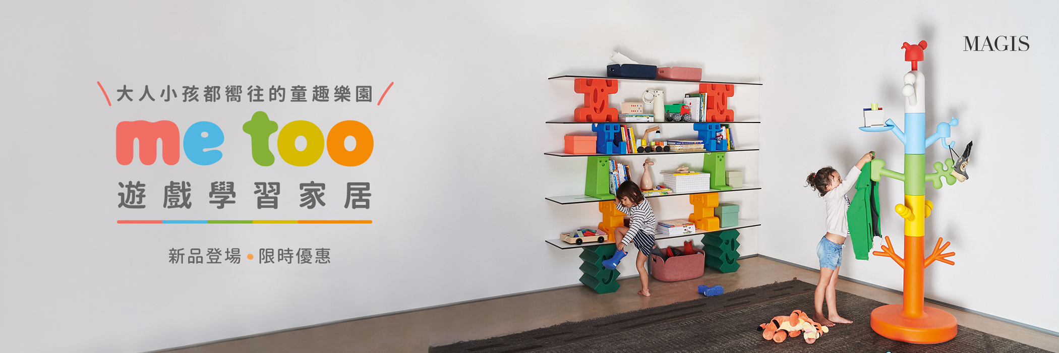 孩子是我們的未來,Me too 系列由多位設計大師共同打造而成,交出許多大人也愛不釋手的童心設計,包含造型座椅,伸降家具、置物收納、組合積木、拼圖地毯、戶外家居等,可愛迷人的童趣外觀,能開啟孩童的豐富想像,增添遊戲互動性,培養主動探知的能力,打開學習成長的大門,就從擁有自己的家具開始吧!