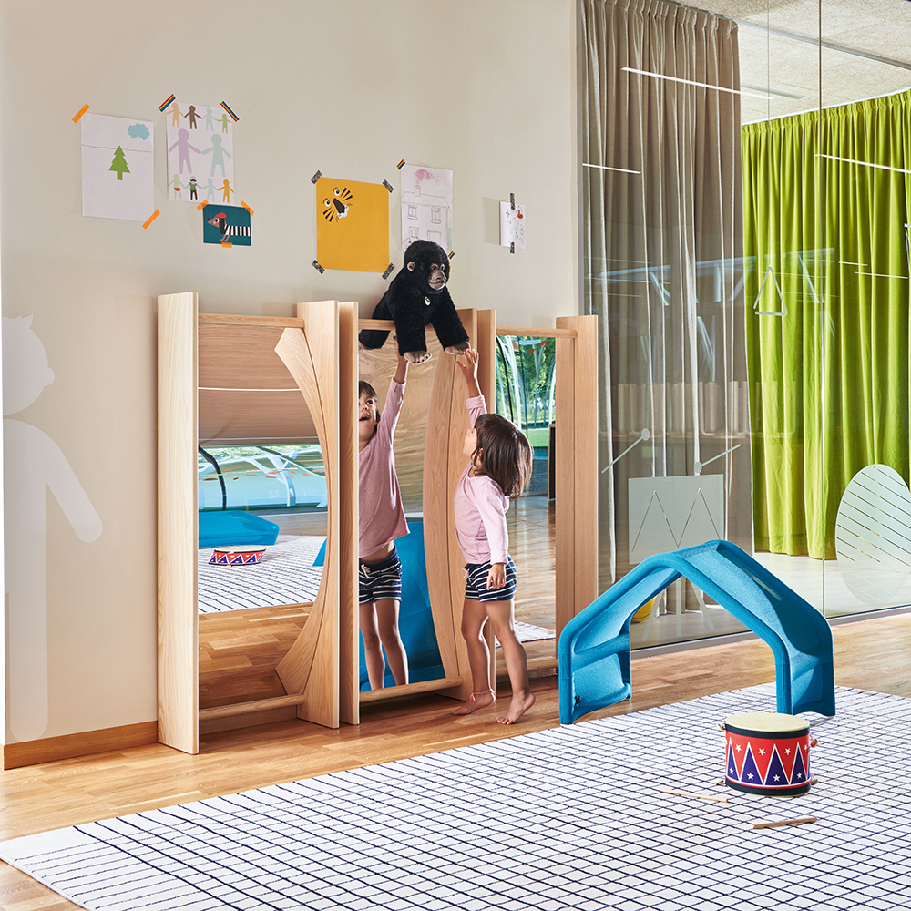 針對成長中的小大人們,瑞士設計工作室 BIG-GAME 製作了伸降學習桌椅及哈哈鏡;天馬行空的西班牙圖像設計師 Javier Mariscal 則為小朋友們準備了,怪獸臉孔的 Nido 小屋及 Ladrillos 書架;以手工童玩聞名的荷蘭設計師 Floris Hovers,打造出卡通感十足的 CARtools 汽車積木等。希望能透過「設計」的力量,,讓孩子在生活中遊戲學習,創造一個快樂自在的成長環境。