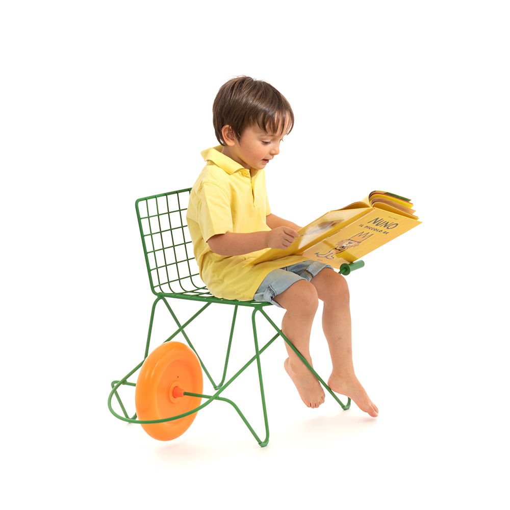 Me too 系列的第一件作品是和被稱為義大利設計良知的 Enzo Mari 合作,長期關注兒童教育的他,提倡孩童的移動自主權,設計出小孩也可帶著走的 Seggiolina Pop 輕巧兒童單椅;隨後也邀請芬蘭設計大師 Eero Aarnio ,推出可愛童趣外觀的 Puppy 犬、Happy Bird 快樂鳥等動物造型座椅。