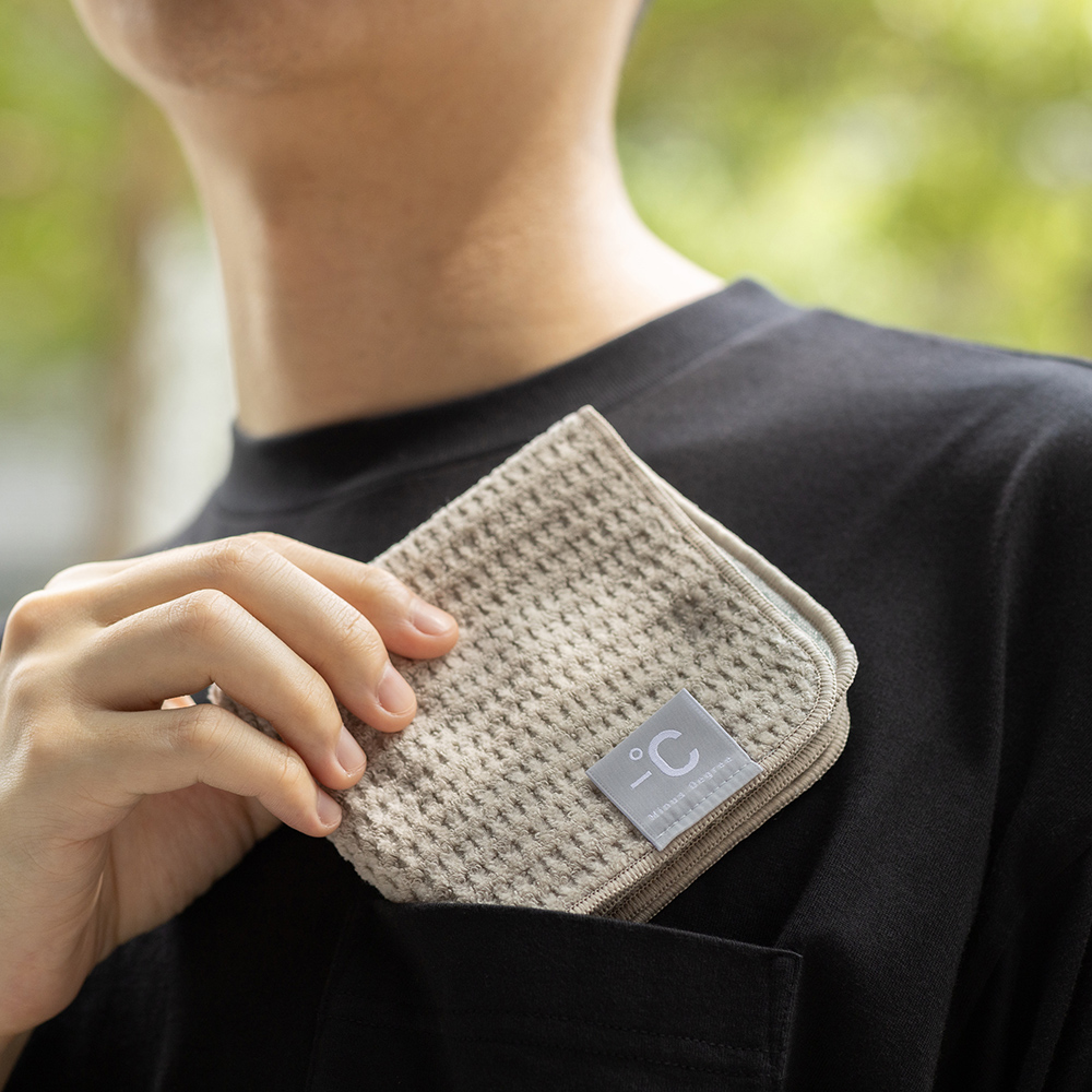 品牌最具盛名的降溫涼感巾,正面採用頂級的今治全棉毛巾,柔軟親膚;背面則為專利研發的特殊材質「zero cool」,不沾水接觸皮膚就能予人酷涼感受;潤濕毛巾後,更將全面釋放涼感機能,並且能重複使用,環保又輕便,體驗涼感隨行 Cool 夏!