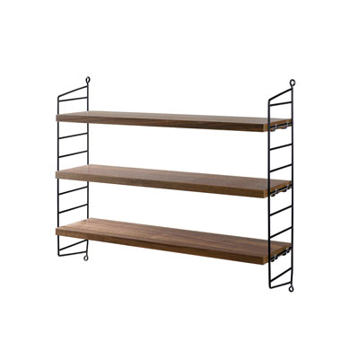 Pocket 壁掛三層架(黑鋼架、胡桃木 MDF 層板) -