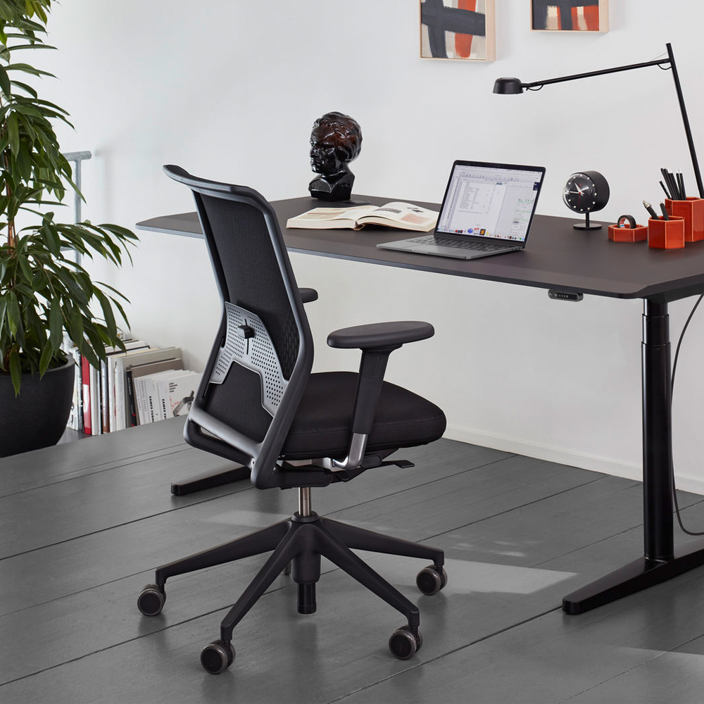 ACX Light 人體工學辦公椅(網織椅背 / 午夜黑布料 / 深黑色框架 / 升降式扶手) -