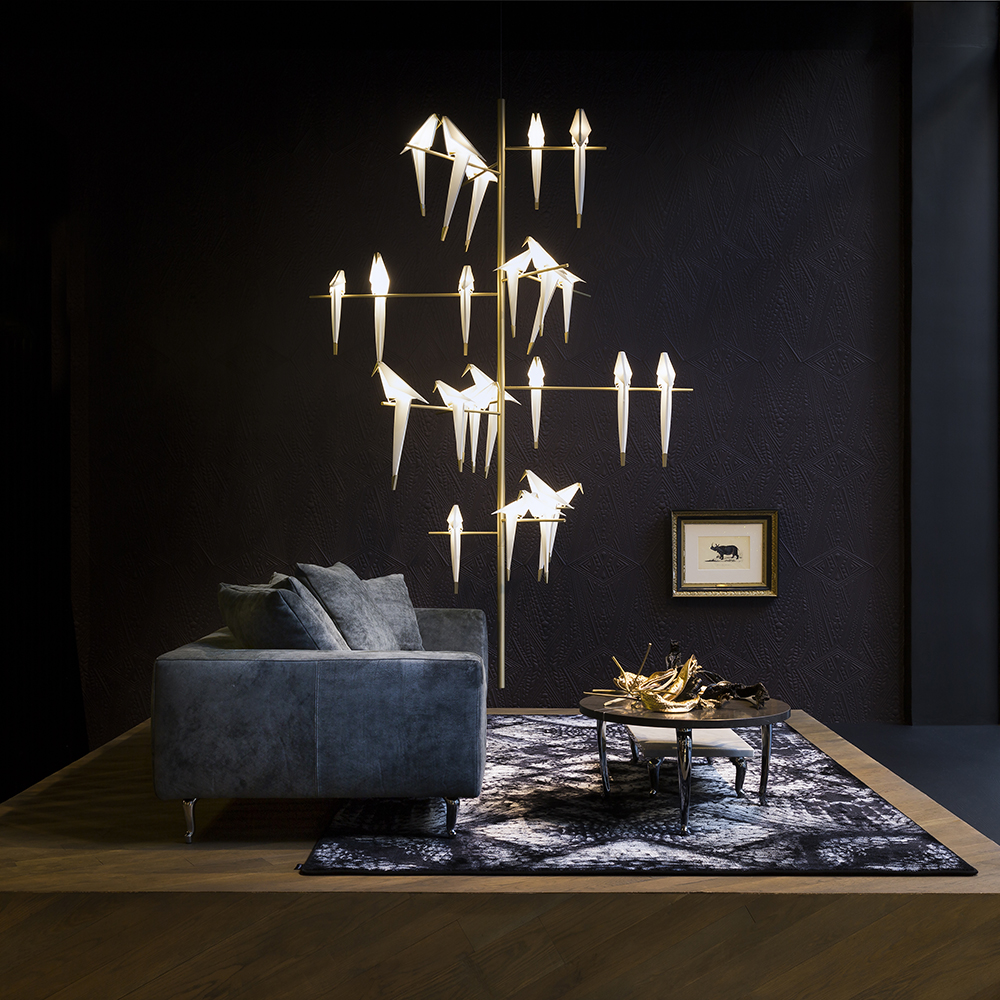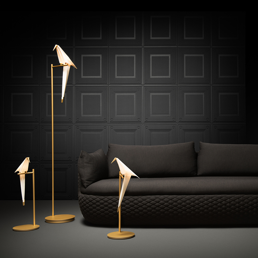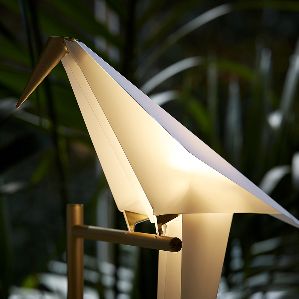 汲取大自然元素為靈感,捕捉鳥兒棲息在樹上的優雅幸福姿態,英國設計師 Umut Yamac 以鳥類休憩時的樣貌創作出系列燈具。運用摺紙概念將鳥兒的姿態極簡化,將黃銅材質點綴於喙及鳥尾,不僅令人眼前一亮,更隱晦的呈現鳥類那堅硬的喙及俏麗的羽尾,動靜間呈現出生命百樣截然不同的詩意空間。