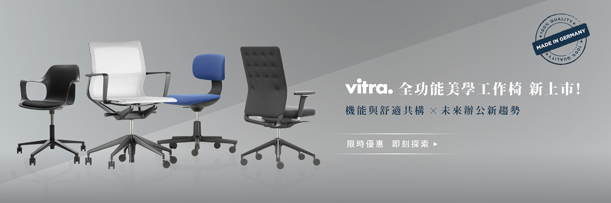 瑞士家具商 Vitra 自 1960 年開始涉足辦公家具設計,至今超過 50 年以上的經驗,每每推出新作均在全球造成廣大的回響及一致的好評,摩登現代的外型不在話下,注重使用者經驗並加以創新改良,更是 Vitra 在國際上屹立不搖的最佳理由。也因此,當市面上的辦公椅仍強調著醒目可見的龐大功能造型時,Vitra 辦公系列座具將簡潔、舒適、機能、人體工學,完美融合共生共存,顛覆傳統辦公家具的嚴肅沉悶,向大眾宣示著:「是的!Vitra Office 就是這麼完美又舒適!」。