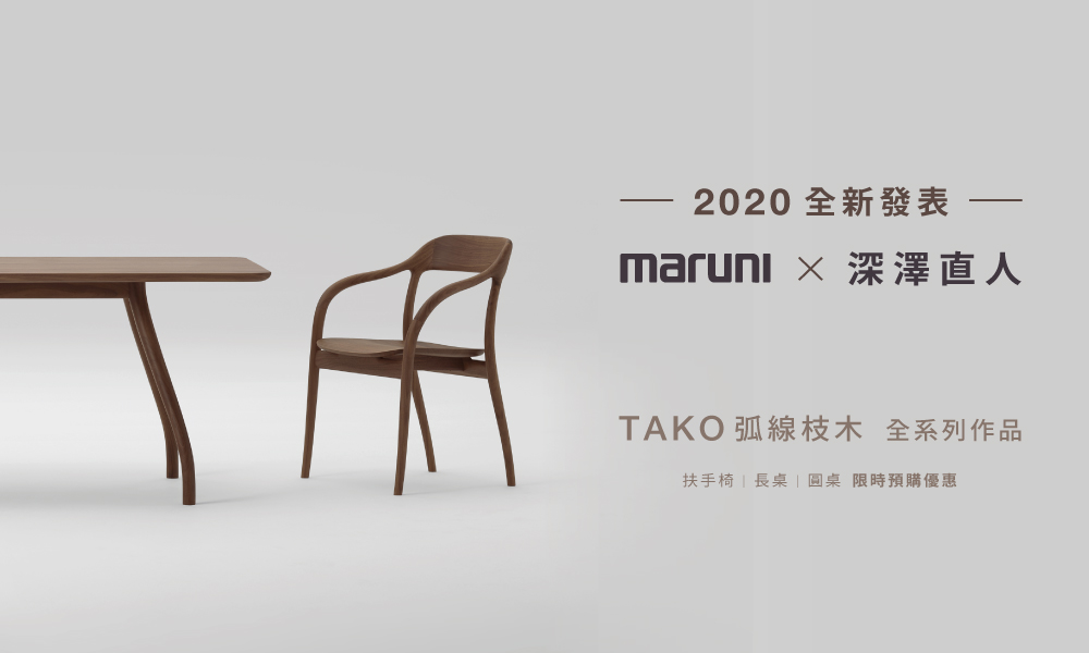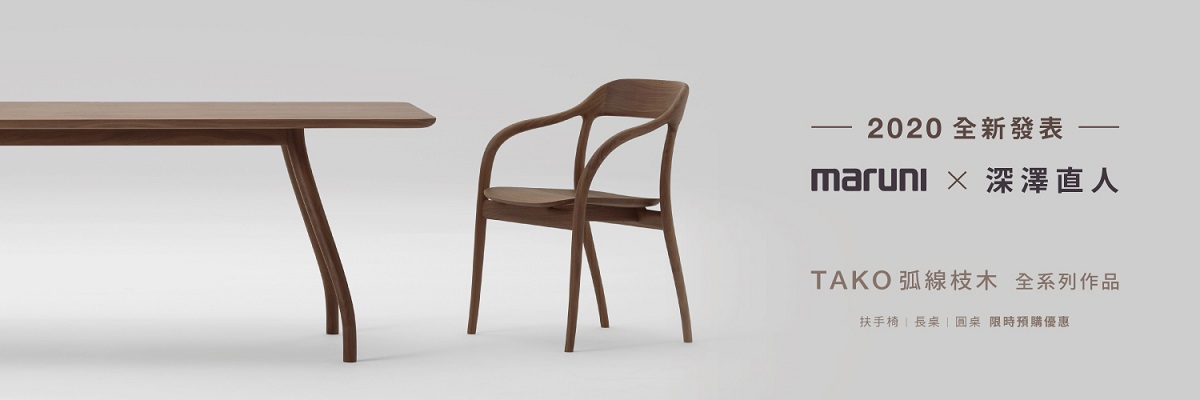 日本家具品牌 Maruni,致力於打造出經典的產品,更持續地將原本設計再做延伸與進化。深澤直人的新作品《TAKO》便是從《HIROSHIMA》廣島系列中汲取再進化,創造出極具有機曲線感的設計,讓木頭回到像是最原始的樹枝形態,在空間中綻放,完美到甚至不需有室內裝潢的襯托。