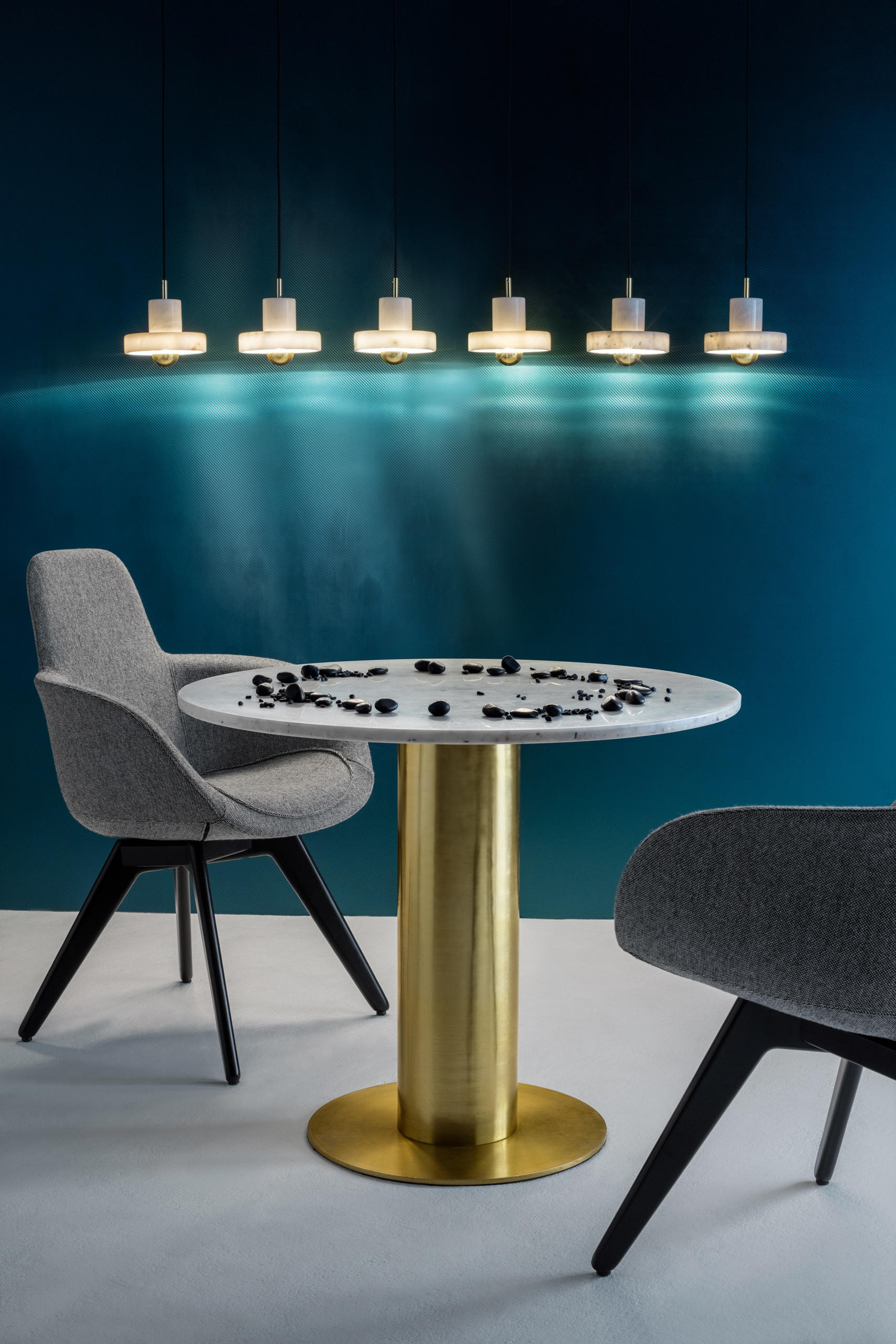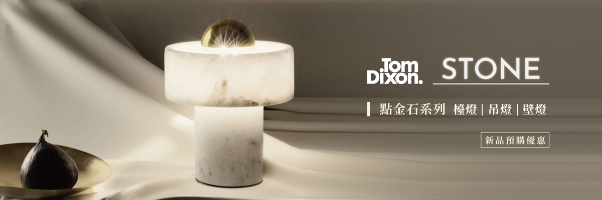 受泰姬陵之美啟發,英倫鬼才設計師 Tom Dixon 創作出「STONE」系列燈飾,每件作品皆以整磚大理石獨立雕琢,天然石材的色彩紋理具特殊分佈,讓燈飾均顯獨一無二;除此之外,大理石盡可能地被切割至最薄,使之達到半透明的視覺效果,突顯精緻表層圖紋。巧妙融合金燦黃銅裝飾元素,STONE 燈飾擁有奪目外觀之餘,散發著自然溫潤的光線;若將檯燈、吊燈與壁燈搭配展示,便能輕鬆呈現一份無與倫比的主題張力。