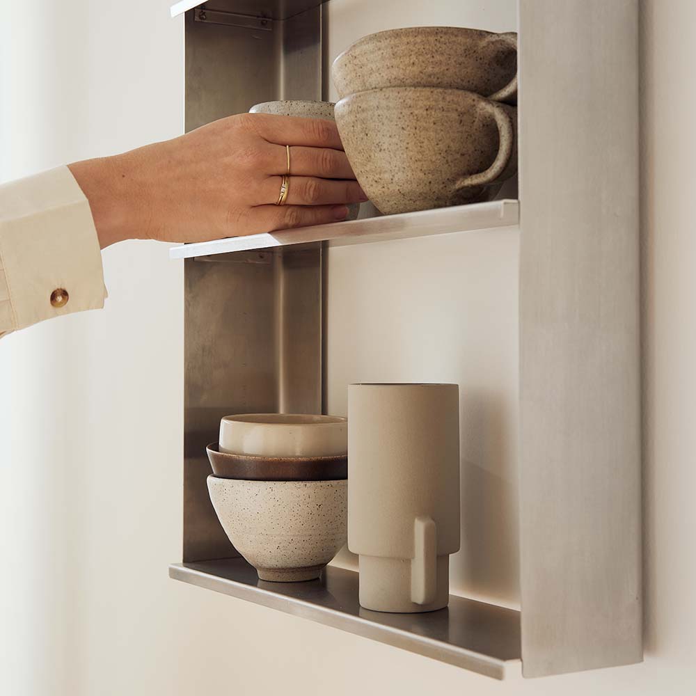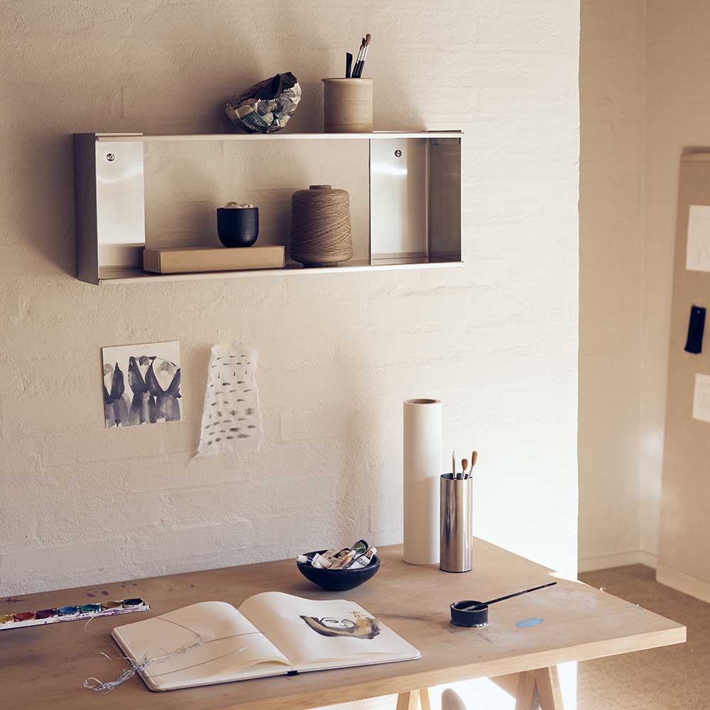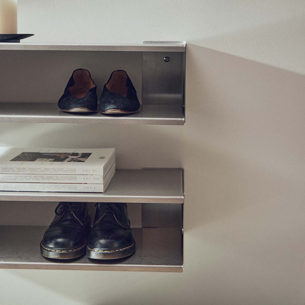 2026 年推出的 Taper 系列,整體使用不鏽鋼為材質,以圓角收邊勾勒出俐落線條,為鋼材增添滑順觸感,充分展現出金屬家具的理性純粹。品項涵蓋了置物層架、開放式鞋架、床頭櫃與掛鏡等,專為日常而生的精準比例,最終成就一件歷久彌新的經典家具。