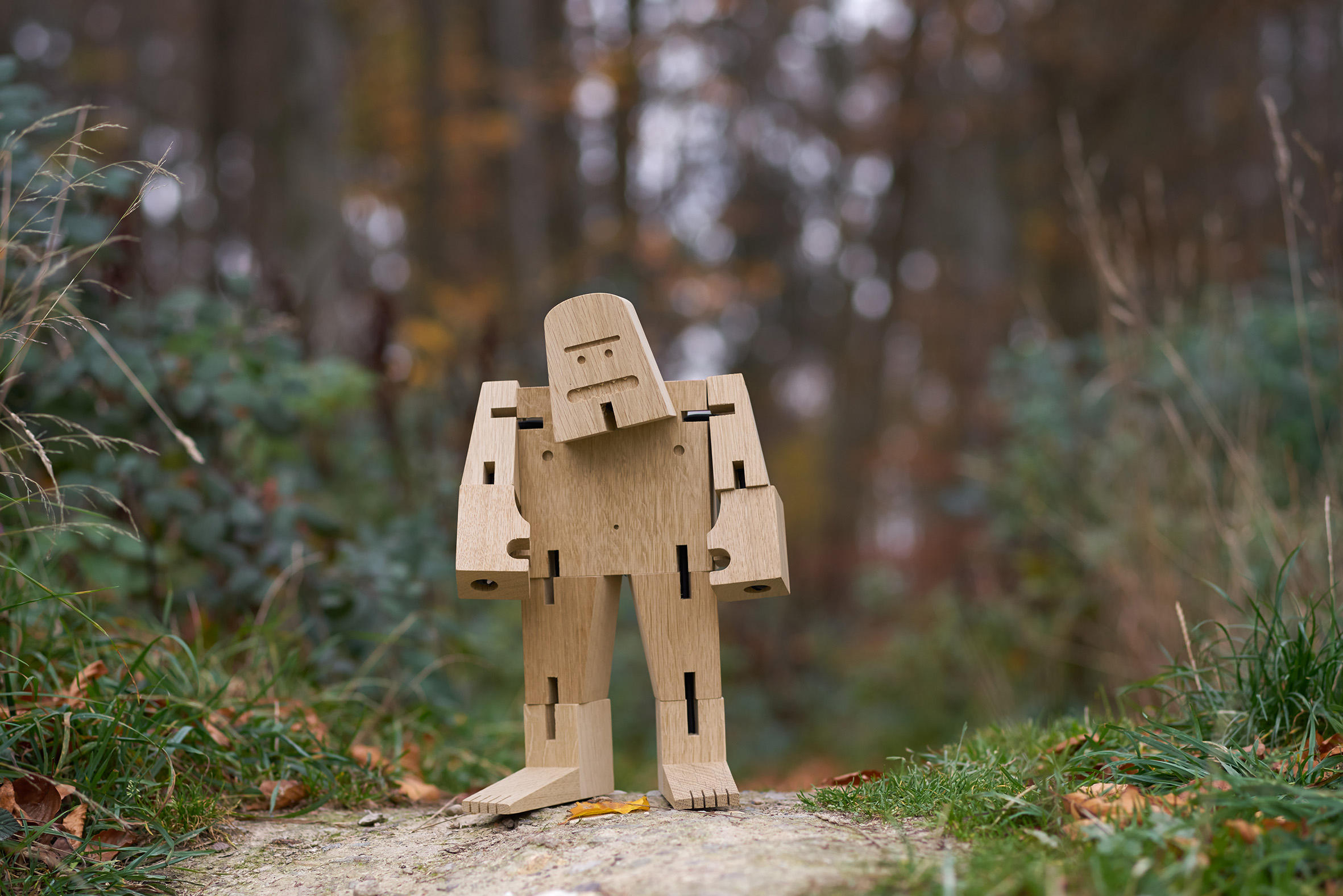 來自德國的 e15,品牌精神是以極簡之態展現日常之美,經典作品從家具到藝術擺件,均使用質量極佳的天然素材,其中 MR B 百變橡木機器人,全身以堅硬厚實的歐洲橡樹實木製成,透過工匠細膩的手工處理,才得以成就令人喜愛的百變橡木 MR B 機器人!